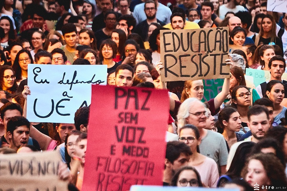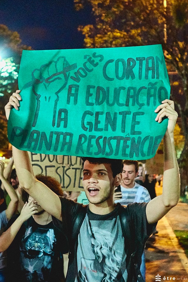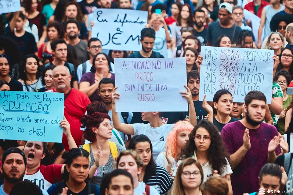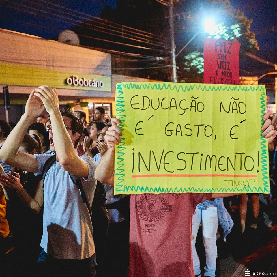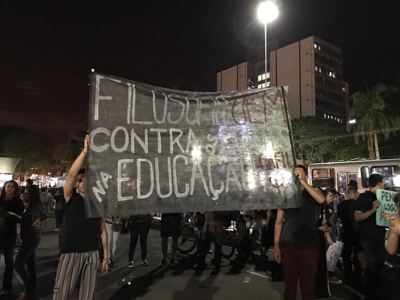 Outro instrumento utilizado durante o protesto foi a criatividade. Os participantes erguiam cartazes com fases como “o conhecimento destrói mitos”, em referência ao presidente que é chamado de mito pelos apoiadores, e “educação acima de tudo, universidade para todos”. Teve manifestante que aproveitou a versão brasileira da música “Shallow’, da Lady Gaga, para mandar o recado: “Juntos pela educação e Shallow Now”.