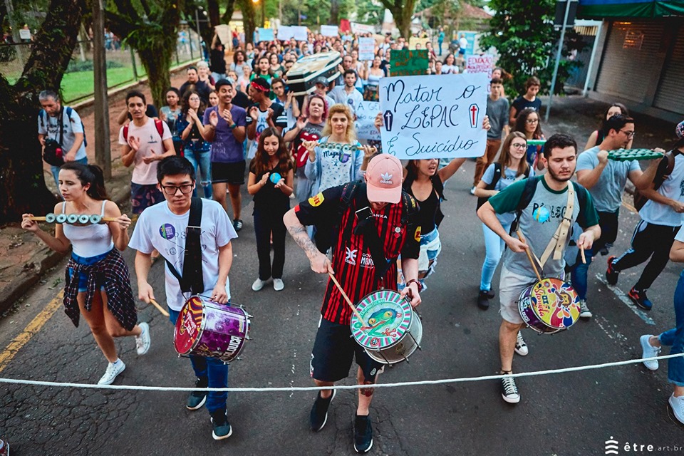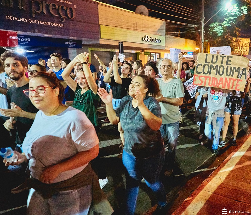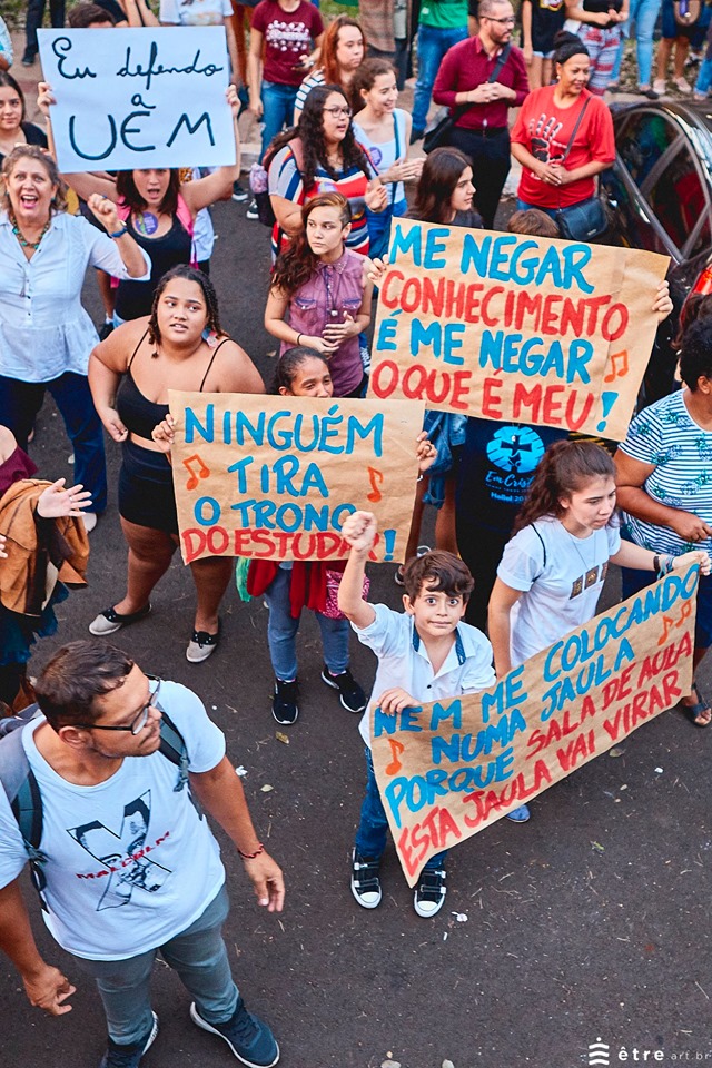 Em Maringá, era pouco mais de 17h30, o sol se despedia do dia 30 de maio de 2019, quando os estudantes ergueram as cartolinas, que se transformaram em instrumento de crítica misturado com muita criatividade, e começaram a percorrer ruas e avenidas da cidade. Segundo a Polícia Militar eram 1,5 mil, mas os organizadores estimam em 3,5 mil participantes.