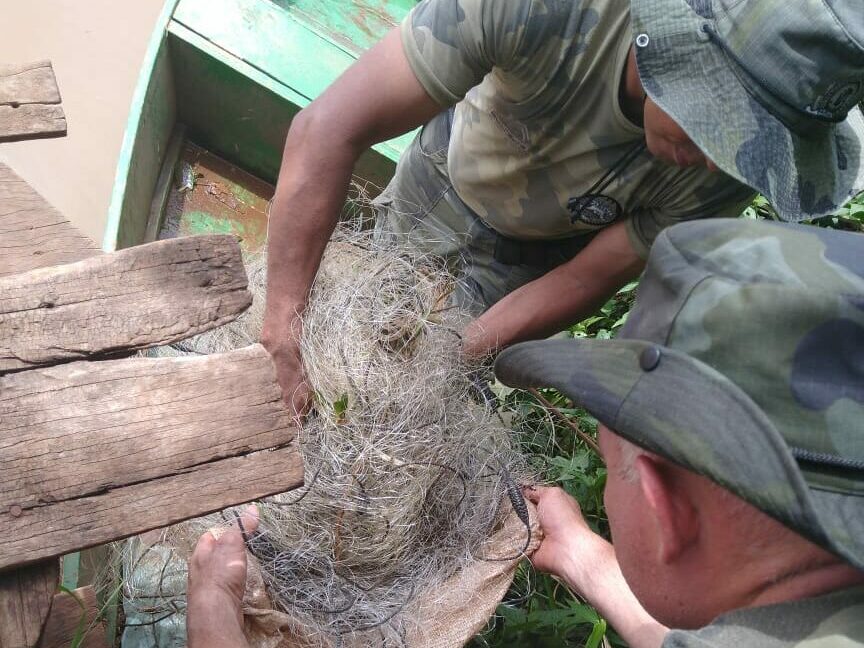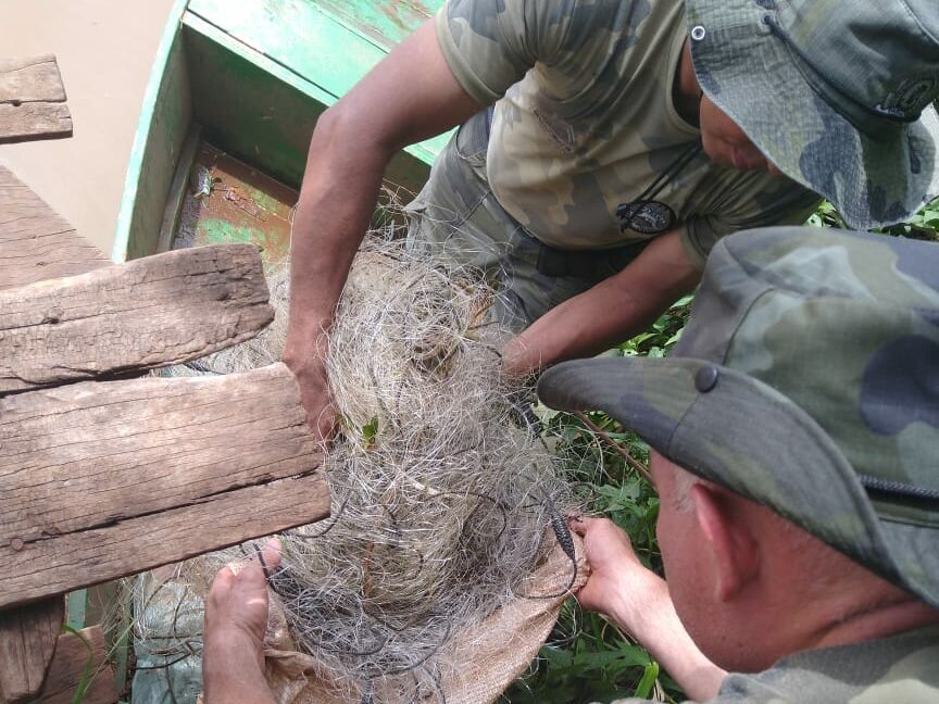 Junto ao homem preso em flagrante, foram apreendidos quatro peças de redes de e-malhar e uma espingarda Cartucheira CBC calibre 28.