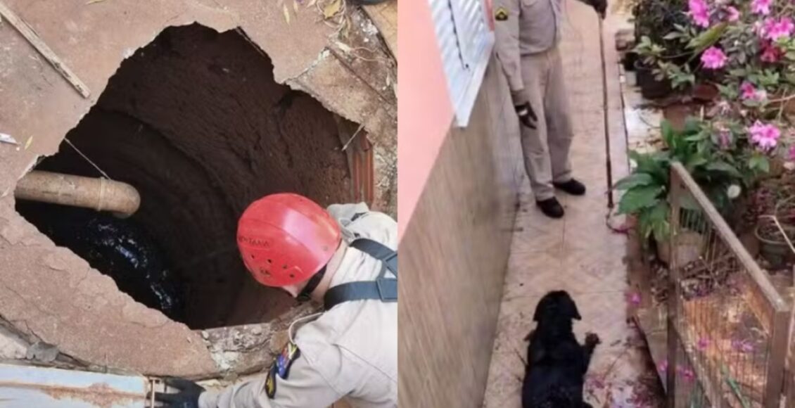 Na manhã desta quinta-feira (4), uma cachorra de grande porte foi resgatada pelo Corpo de Bombeiros após cair em uma fossa com cerca de cinco metros de profundidade, em Sarandi.