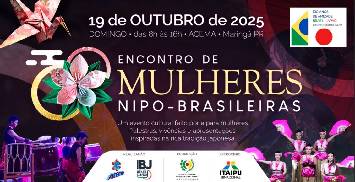 O Encontro de Mulheres Nipo-Brasileiras promete reunir cerca de mil mulheres de todo o Paraná em um dia inteiro dedicado à cultura, aprendizado e celebração da força feminina. Marcado para o dia 19 de outubro, das 8h às 17h, na Associação Cultural e Esportiva de Maringá (ACEMA), o evento vai reunir representantes de associações, entidades e instituições nipo-brasileiras em atividades que estimulam a reflexão, a troca de experiências e o fortalecimento das comunidades.
