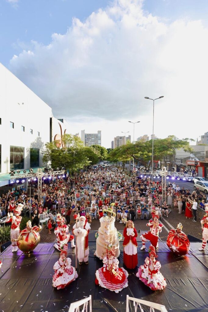 A grande celebração acontece em frente ao Shopping, na Avenida São Paulo, onde será montado um palco para o espetáculo de Natal “Em busca do brinquedo perfeito”, que começa às 17h. A apresentação teatral, repleta de encanto e emoção, marcará o aguardado momento da chegada do Papai Noel. Antes disso, o público será recebido pela fanfarra da APAE, que levará ritmo e alegria à abertura do evento.