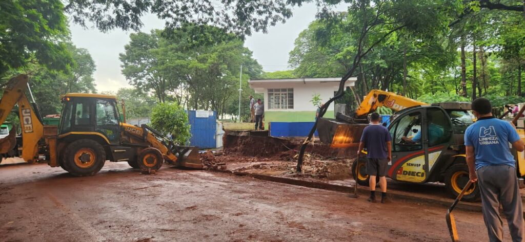 Parte do muro do Cemitério Municipal cedeu durante a chuva. Em nota enviada ao Maringá Post, a Prefeitura de Maringá informou que equipes das secretarias de Infraestrutura (Seinfra) e Limpeza Urbana (Selurb) trabalham no local. O município afirmou que, de forma emergencial, serão instalados tapumes, e que a reconstrução do trecho danificado será feita assim que as condições climáticas permitirem.