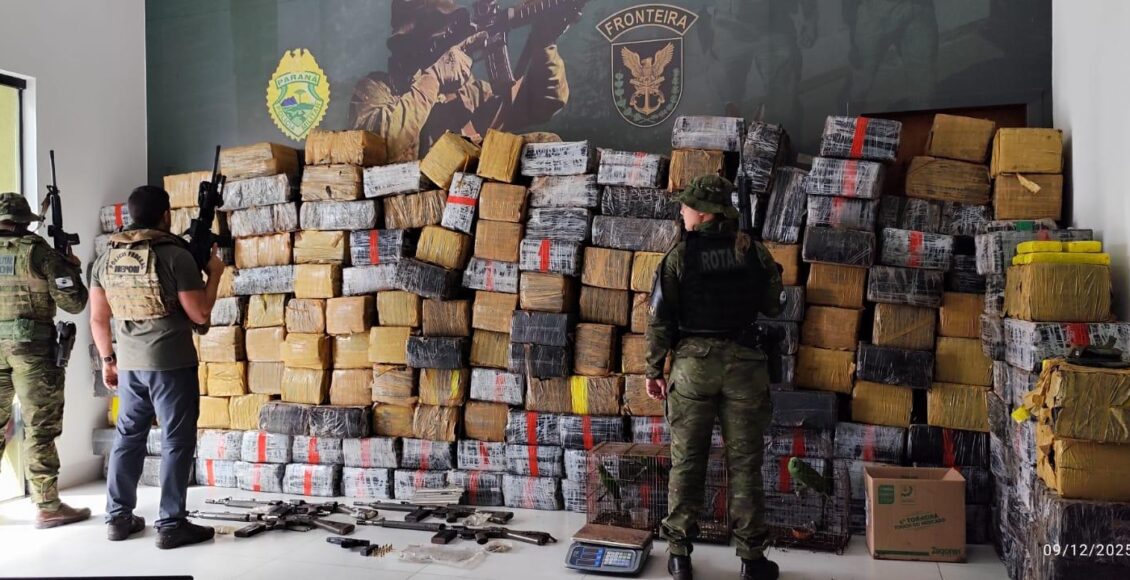 Nesta terça-feira, 9, a Polícia Militar do Paraná (PMPR), por meio do Batalhão de Polícia de Fronteira (BPFRON), em ação integrada com o Batalhão de Polícia Ambiental e o NEPOM da Polícia Federal, realizaram a apreensão de aproximadamente 3.5 toneladas de maconha, em Icaraíma, nas proximidades do Rio Paraná.