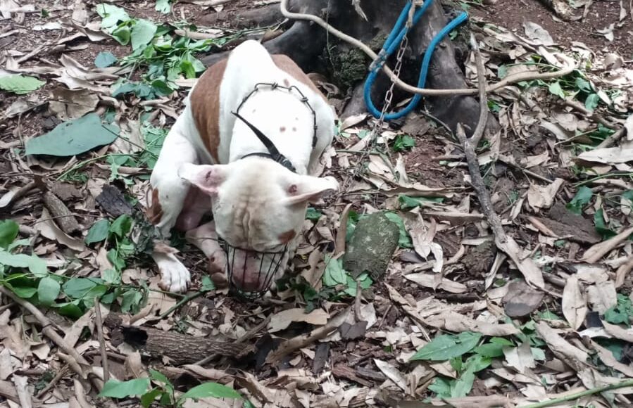 Um cachorro da raça Pitbull foi resgatado por agentes da Guarda Civil Municipal (GCM) de Sarandi em situação de maus-tratos, com uma focinheira e amarrado à uma árvore. O animal foi encontrado em uma área de mata da cidade, na tarde do último domingo, 21.