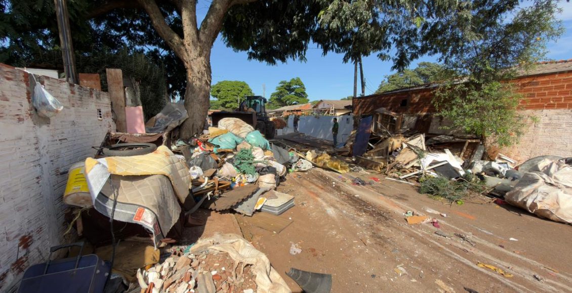 A Prefeitura de Sarandi realizou, na manhã desta quinta-feira (2), uma ação de limpeza em um imóvel na Rua Sabiá, Conjunto Floresta, após diversas reclamações de moradores sobre acúmulo de lixo e entulho.
