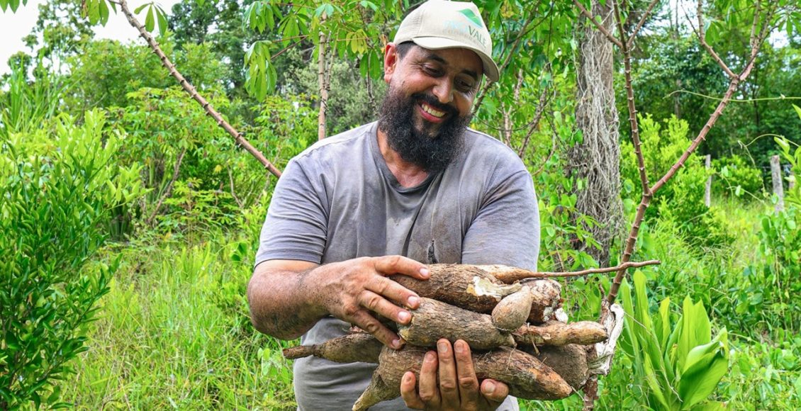 Na lavoura, também houve alteração na produtividade. Antes do acompanhamento técnico, a média era de aproximadamente três quilos por pé de mandioca. Ao final do ciclo, a produção alcançou cerca de seis quilos por planta, com ajustes na adubação e no manejo do solo.