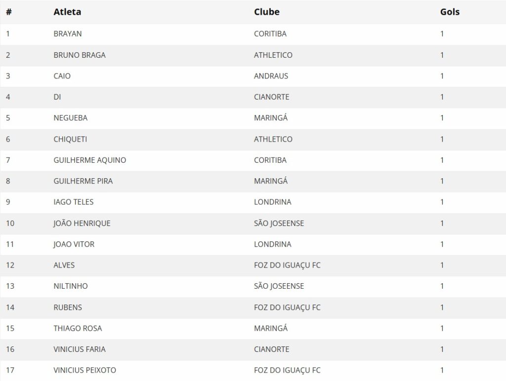 - Pior ataque: Azuriz, Cascavel, Galo Maringá e Operário (0 gols)