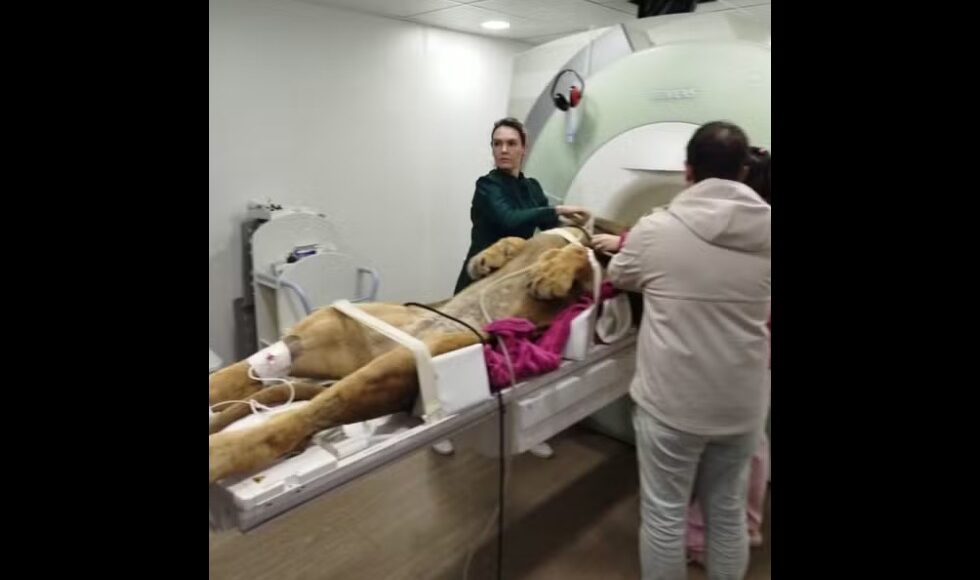 Um leão de 160 quilos passou por ressonância magnética em Curitiba em um procedimento que mobilizou mais de 12 profissionais. O animal, chamado Dacar, tem três anos e voltou em segurança ao Zoológico da cidade após o exame.