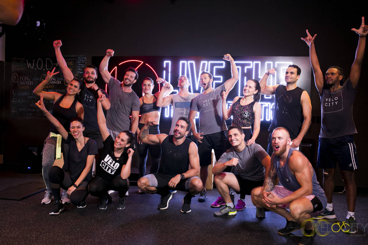 Dentro do conceito da Velocity, as aulas nas bikes são feitas com 80% do tempo em pé, com uma mistura energética de exercícios no pedal e flexões sobre a bicicleta.