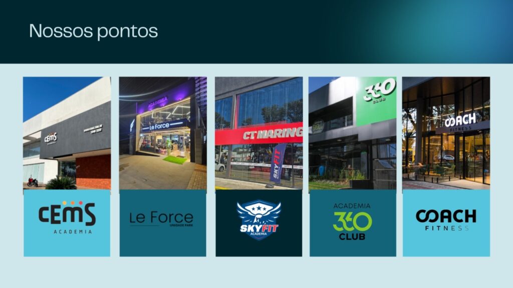 Além das Estações Acqua OOH, a Triunfo instalou painéis de LED em pontos estratégicos das academias, com vídeos de até 15 segundos que são exibidos centenas de vezes por dia. O resultado é uma comunicação de alto impacto, que alia frequência e afinidade, reforçando o reconhecimento e a lembrança das marcas anunciadas.