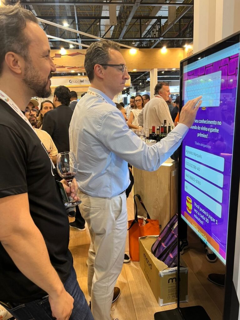 O conceito, proposto por Agnaldo e implementado pela Wine em seu stand, desafiava visitantes com perguntas que iam desde o básico (“Qual a uva emblemática da Argentina?”) até perguntas mais avançadas como (Qual o objetivo da fermentação malolática (FML)?, passando por regiões, métodos de vinificação, vitivinificação e variedades de uva.