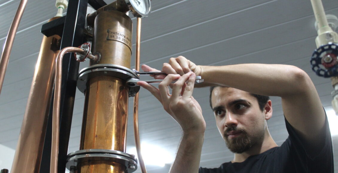 Tudo começou em 2017, quando o então estudante de Engenharia Química da UEM, Frederico Bortoluzzi, organizou uma visita técnica à Cachaçaria Companheira, em Jandaia do Sul, referência na produção de cachaça. O ambiente, os equipamentos e o rigor do processo produtivo chamaram sua atenção e o motivaram a aprofundar os estudos. Dois anos depois, em 2019, Fred conseguiu uma vaga de estágio na própria Companheira, onde passou a acompanhar de perto todas as etapas da produção.