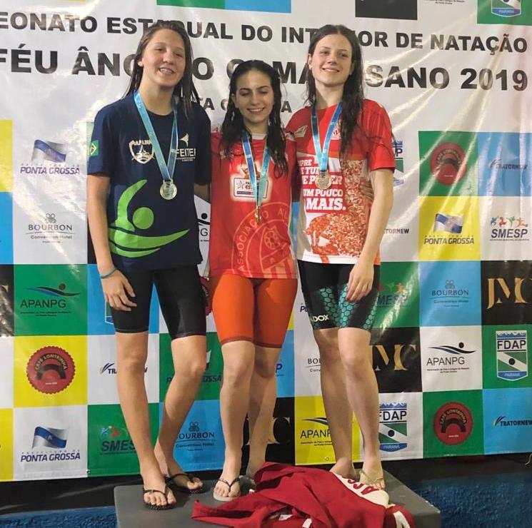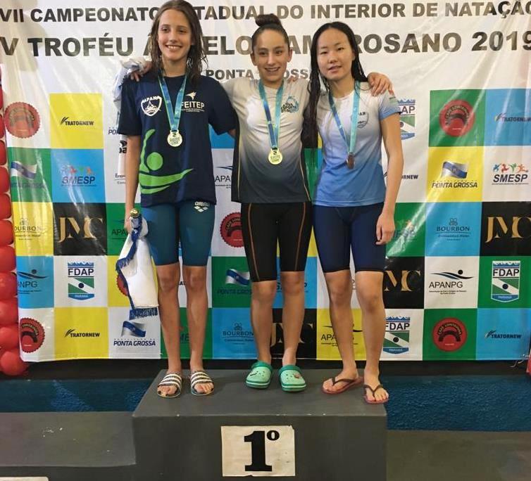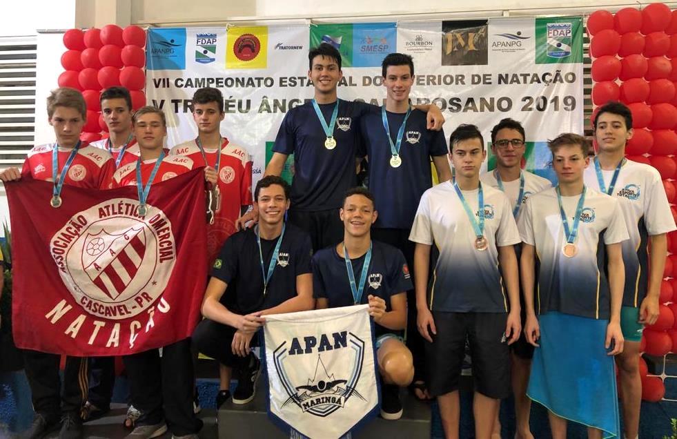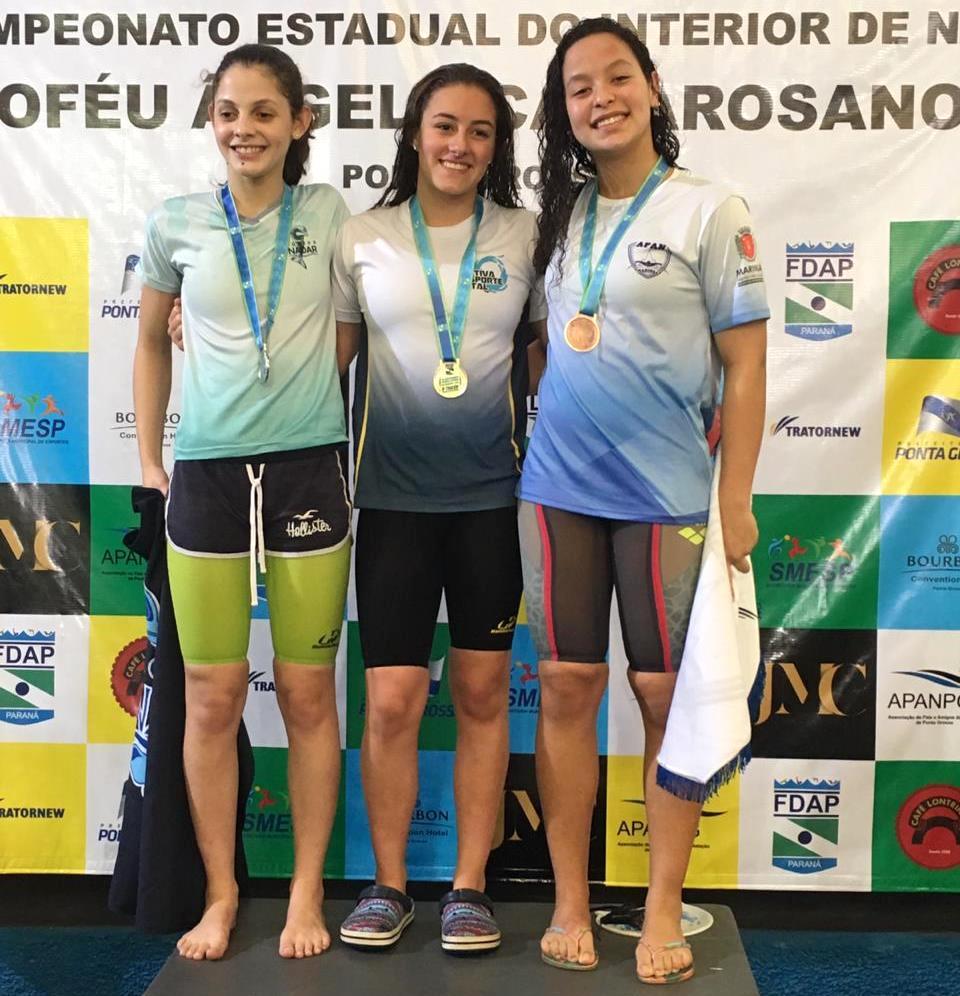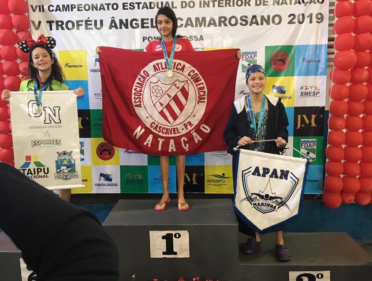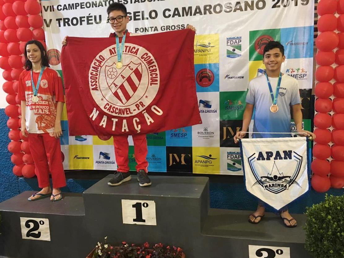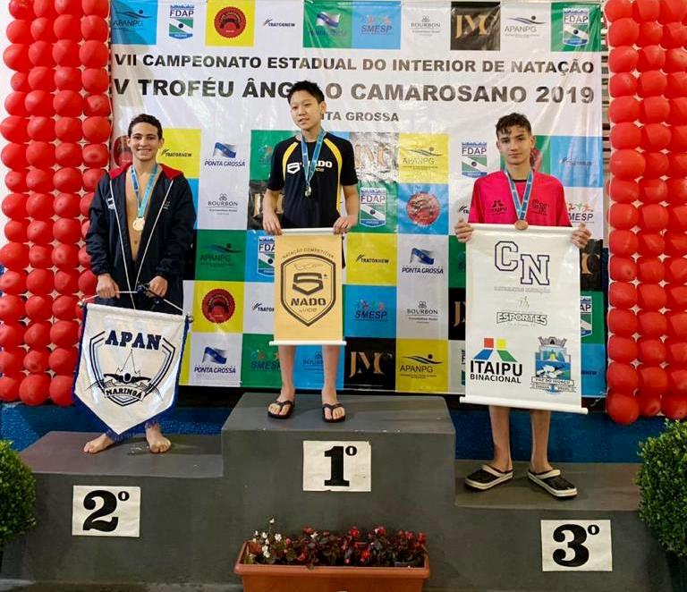 A Associação de Pais e Atletas da Natação (APAN) de Maringá – melhor equipe do interior do Paraná – mostra a sua força no Campeonato Estadual do Interior “Troféu Ângelo Cammarosano”, em disputa até o domingo (1) na piscina municipal Guaíra, em Ponta Grossa. O desempenho dos ´futuros´ craques da natação de Maringá no primeiro dia de provas foi ótimo. Os estudantes-atletas da APAN Maringá visitaram o pódio em 58 ocasiões para receberem 23 medalhas de ouro, 16 medalhas de prata e 19 medalhas de bronze. Conquistas que colocaram Maringá na liderança com 666 pontos. A Ativa Esporte, de Ponta Grossa, vem a seguir com 630 pontos e a Associação Atlética Comercial/Cascavel tem 569 pontos, em terceiro lugar.