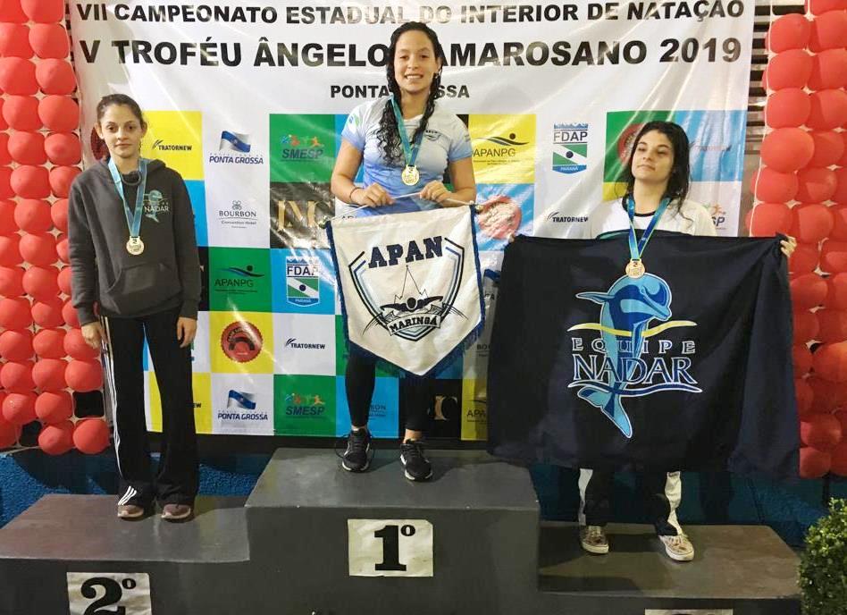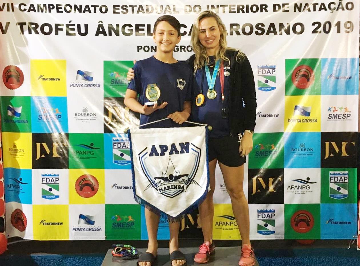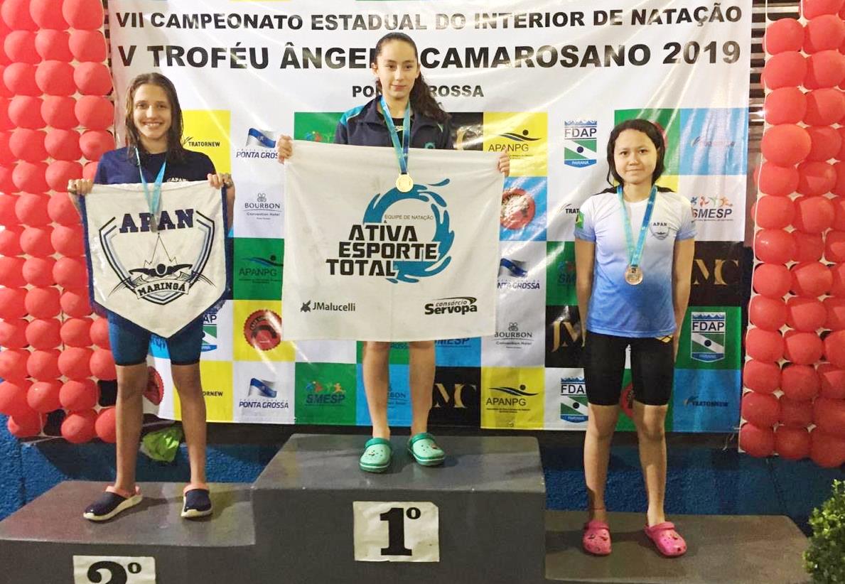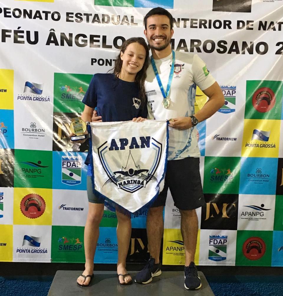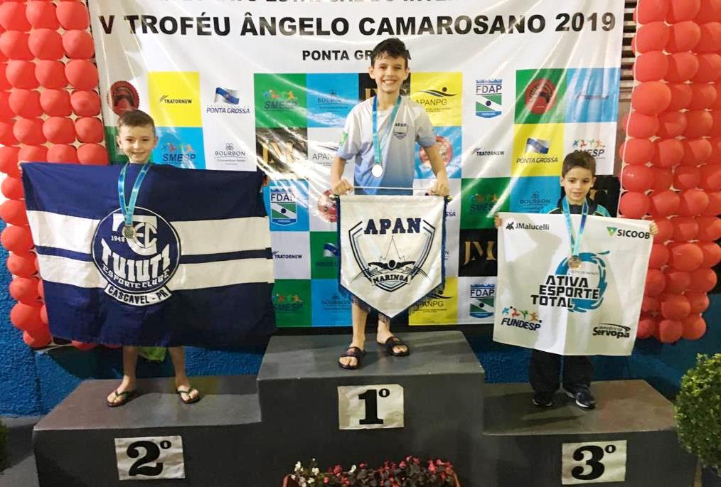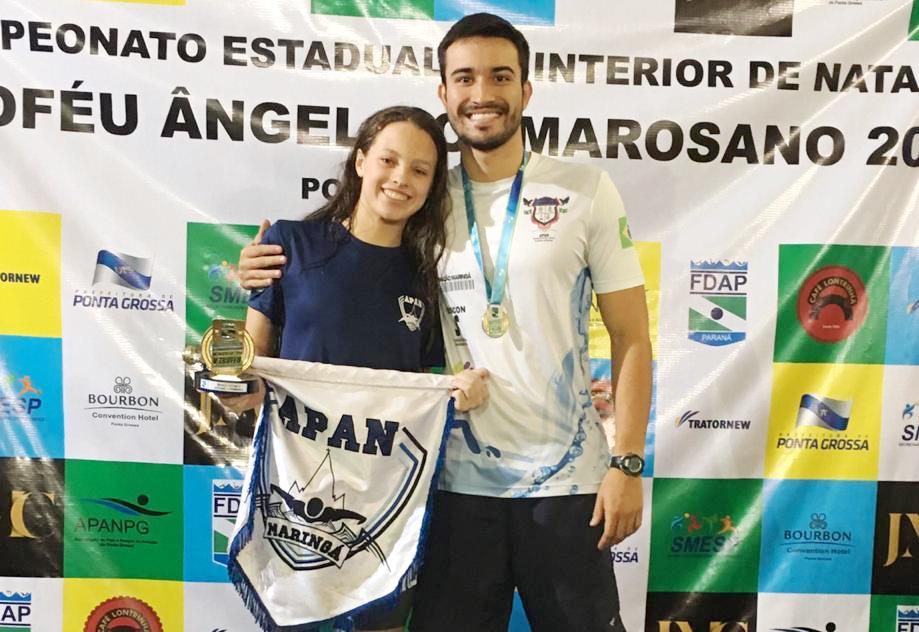 A Associação de Pais e Atletas da Natação (APAN) de Maringá – melhor equipe de natação do interior do Paraná -, ratificou o favoritismo e conquistou, neste domingo (1), o título geral do Campeonato Paranaense de Natação do Interior “Troféu Ângelo Cammarosano”. A competição, iniciada na sexta-feira (30), teve três dias de provas de alto nível na piscina municipal Guaíra, em Ponta Grossa. Os estudantes-nadadores da APAN Maringá foram os que mais visitaram o pódio e brilharam com 71 medalhas de ouro, 39 medalhas de prata e 49 medalhas de bronze. Com 159 medalhas, a equipe maringaense sagrou-se campeã do torneio ao somar 2.009 pontos. A Ativa Esporte, de Ponta Grossa, encerrou na segunda posição, com 1.730,50 pontos, e a Associação Atlética Comercial, de Cascavel, obteve o terceiro lugar, com 1.582 pontos.