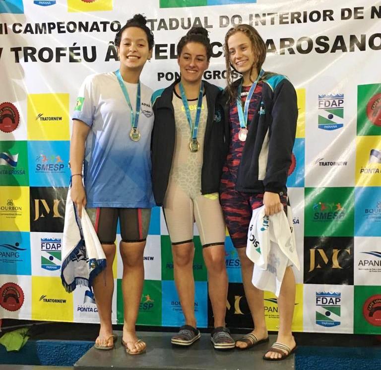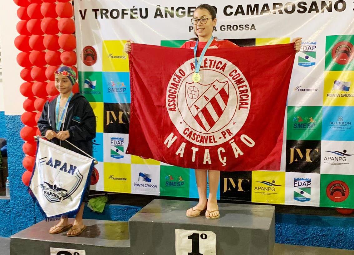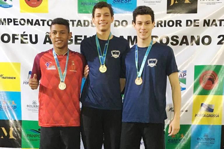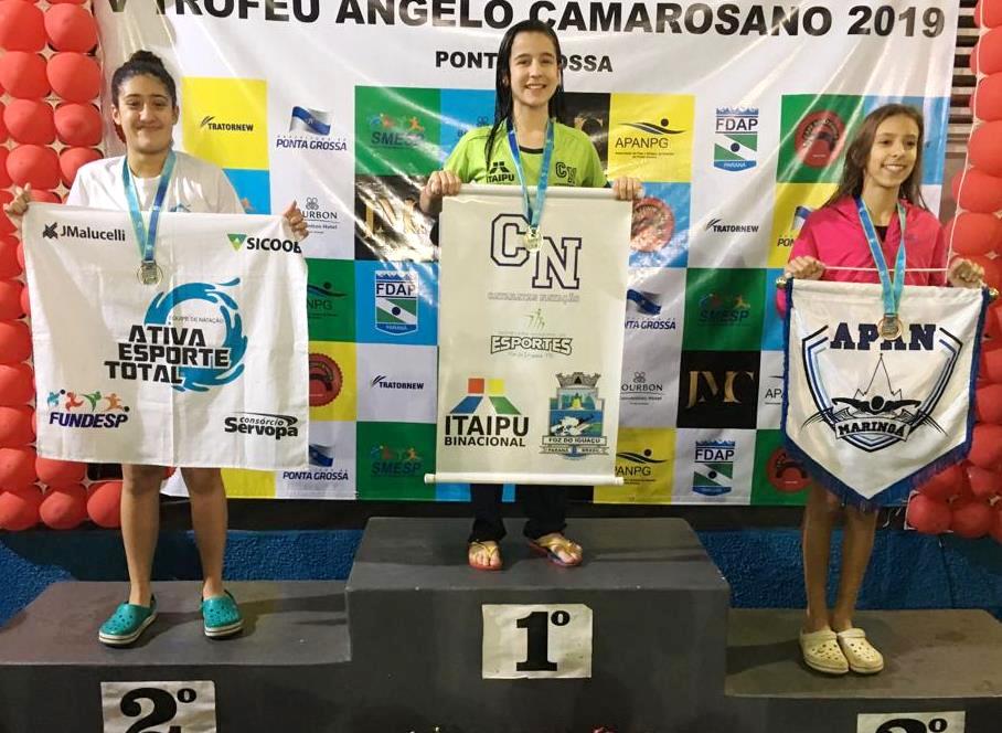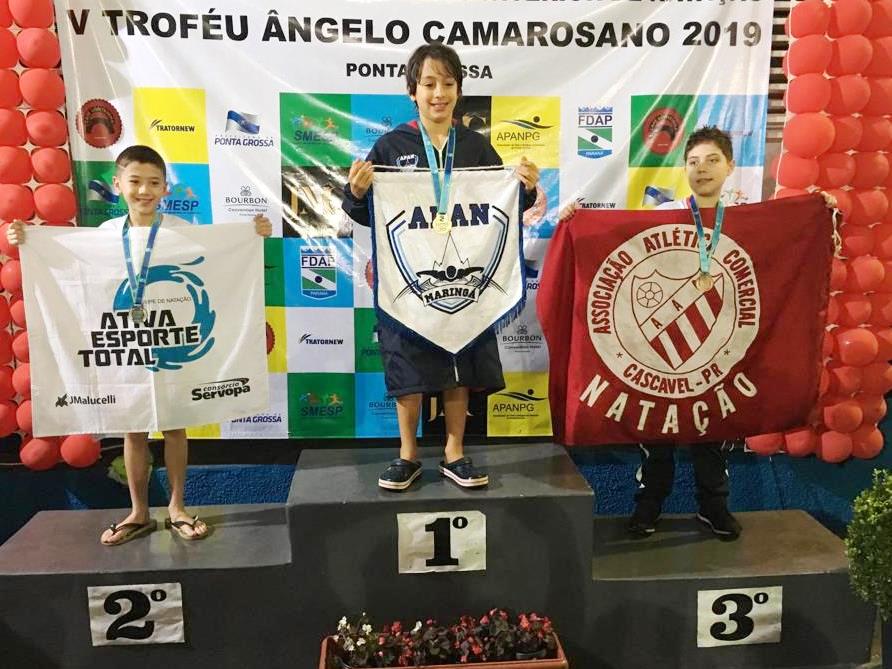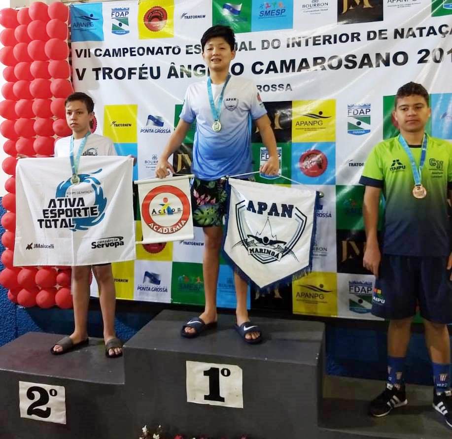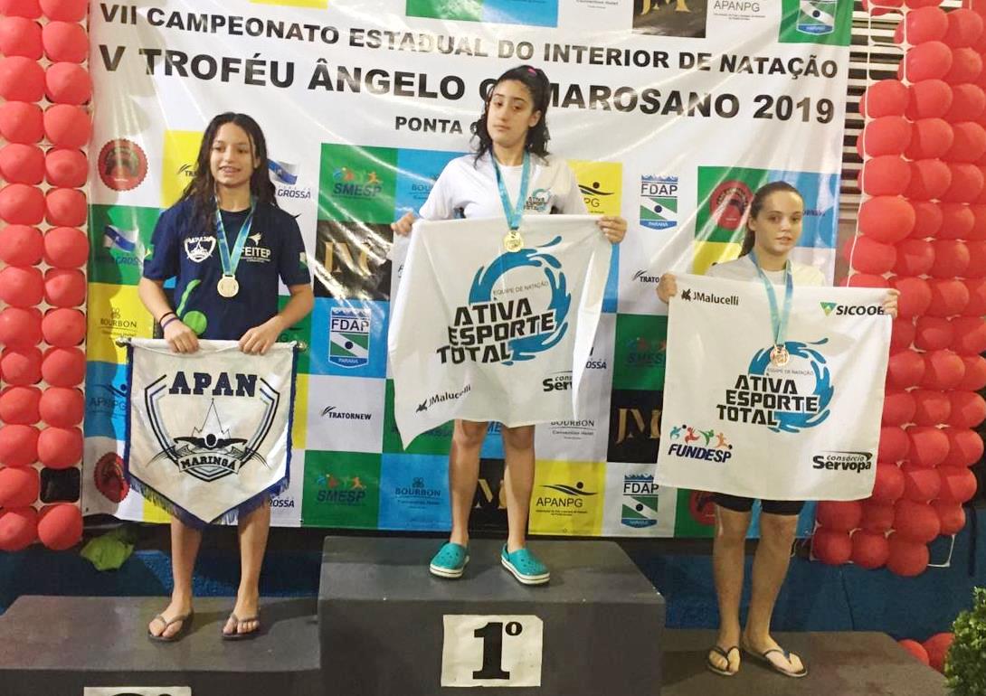 A Associação de Pais e Atletas da Natação (APAN) de Maringá – melhor equipe de natação do interior do Paraná -, ratificou o favoritismo e conquistou, neste domingo (1), o título geral do Campeonato Paranaense de Natação do Interior “Troféu Ângelo Cammarosano”. A competição, iniciada na sexta-feira (30), teve três dias de provas de alto nível na piscina municipal Guaíra, em Ponta Grossa. Os estudantes-nadadores da APAN Maringá foram os que mais visitaram o pódio e brilharam com 71 medalhas de ouro, 39 medalhas de prata e 49 medalhas de bronze. Com 159 medalhas, a equipe maringaense sagrou-se campeã do torneio ao somar 2.009 pontos. A Ativa Esporte, de Ponta Grossa, encerrou na segunda posição, com 1.730,50 pontos, e a Associação Atlética Comercial, de Cascavel, obteve o terceiro lugar, com 1.582 pontos.