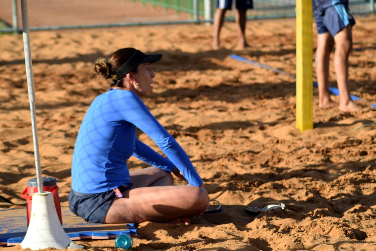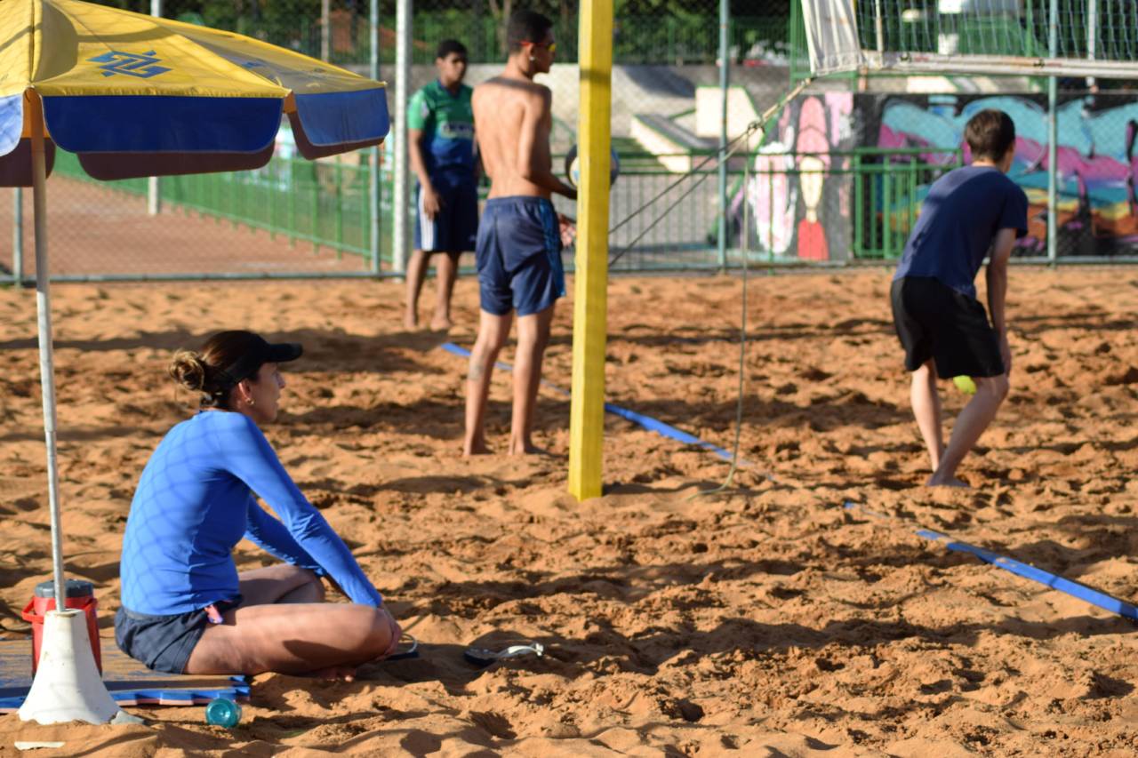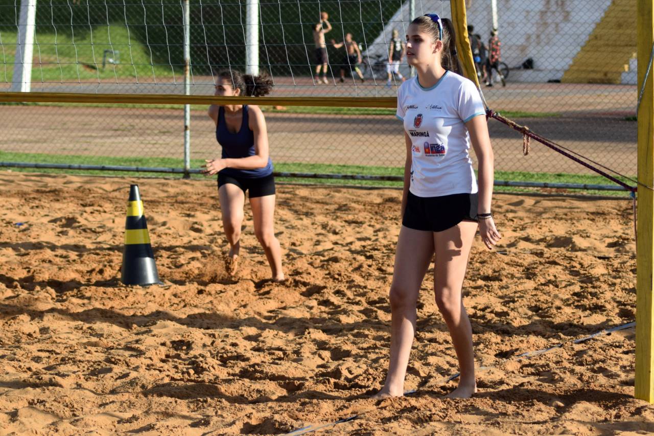 Jovens valores do vôlei de praia de Maringá treinam nas quadras de areia da Vila Olímpica. A professora Lorraine Savano comanda as atividades diariamente. Imagens de terça-feira (3). Fotos: Orlando Gonzalez)