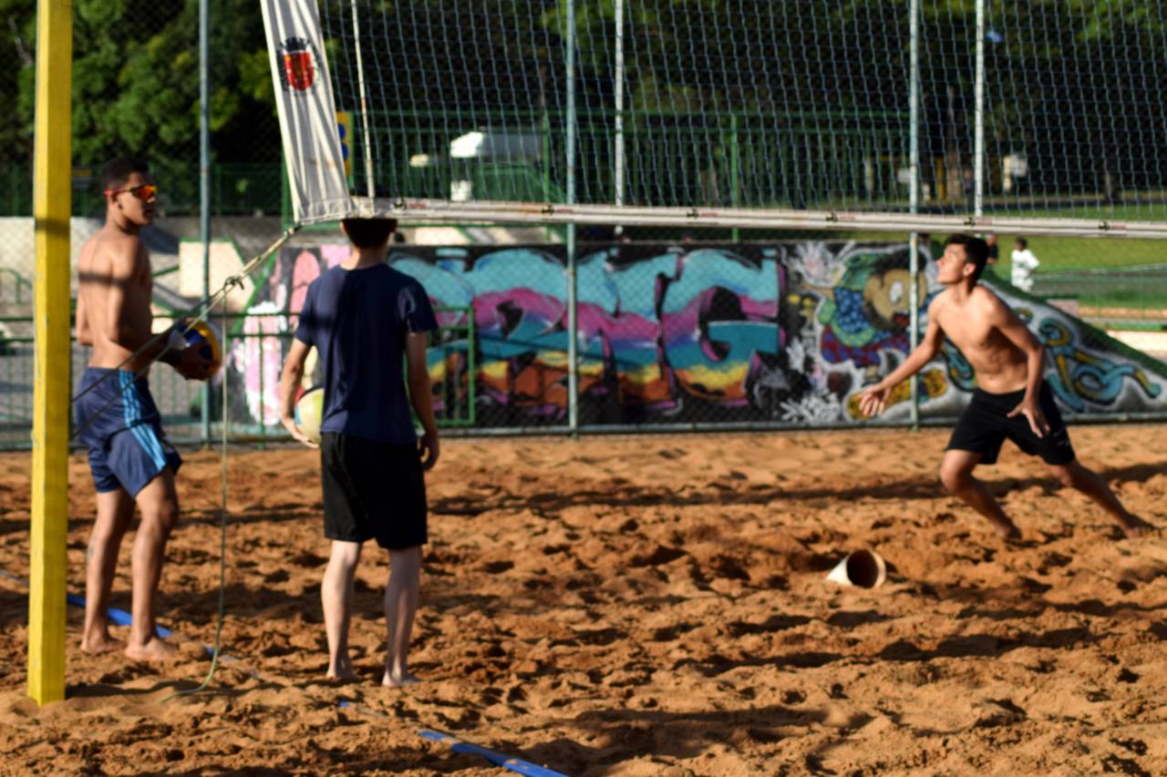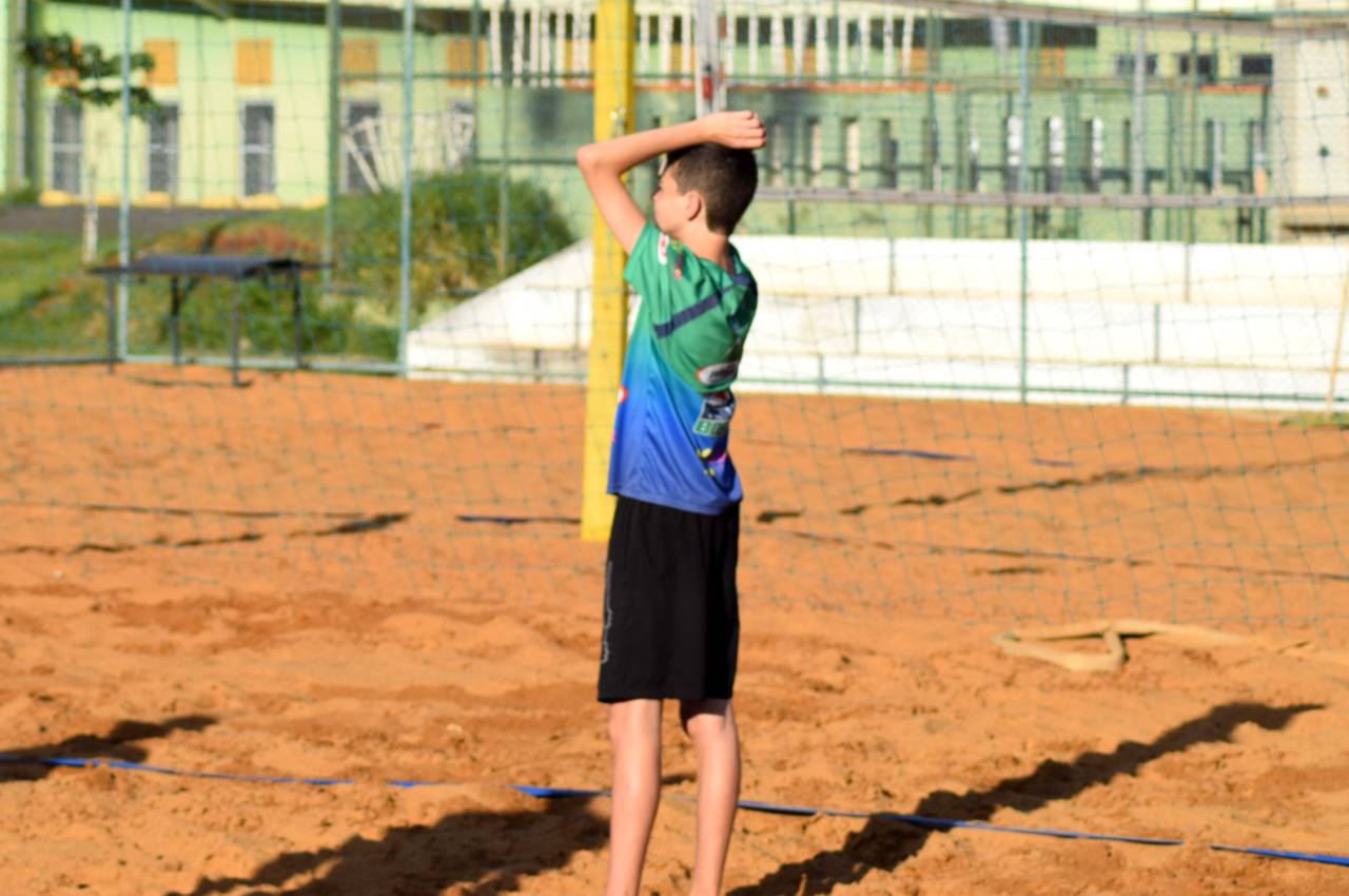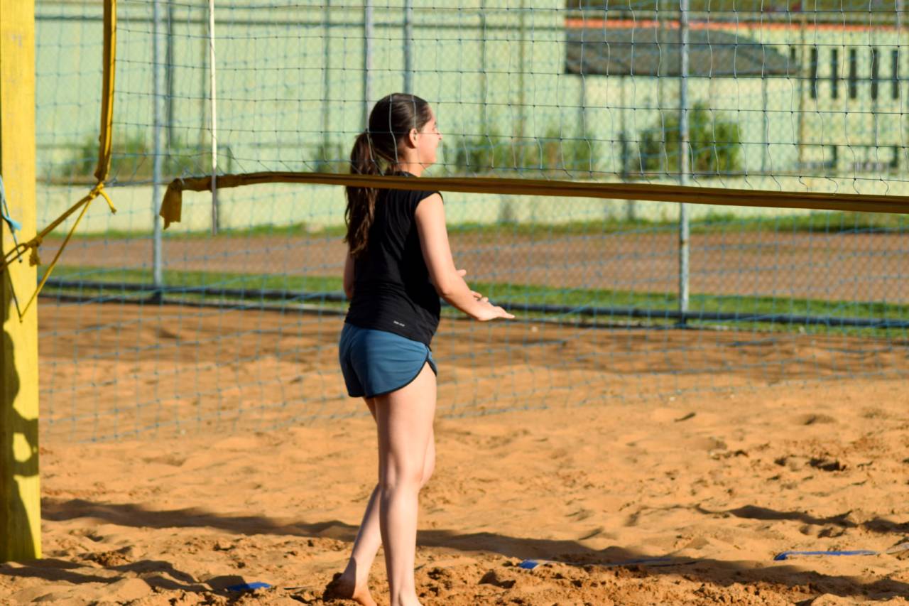 Jovens valores do vôlei de praia de Maringá treinam nas quadras de areia da Vila Olímpica. A professora Lorraine Savano comanda as atividades diariamente. Imagens de terça-feira (3). Fotos: Orlando Gonzalez)