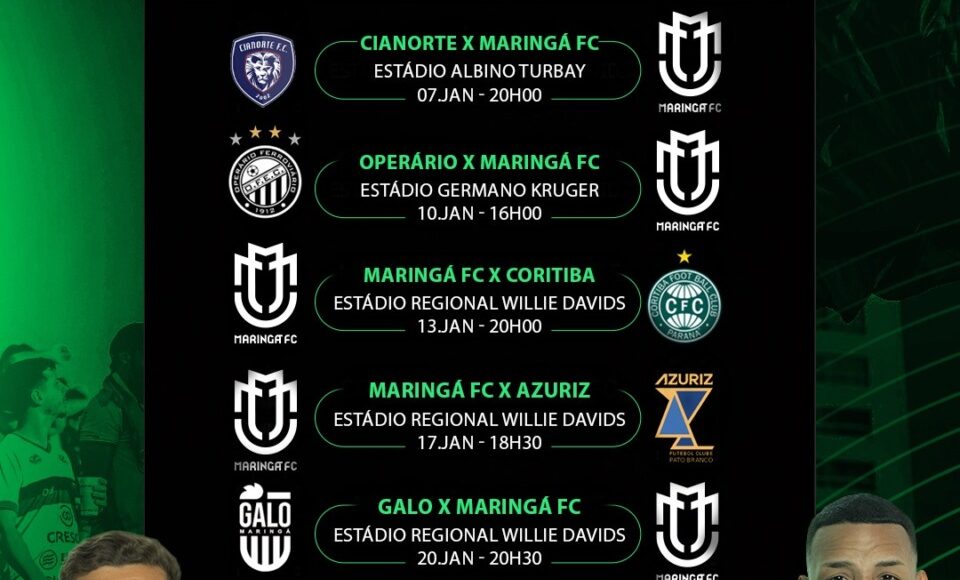 A primeira partida diante da torcida será no dia 13 de janeiro, terça-feira, às 20h, quando o Tricolor recebe o Coritiba no Estádio Willie Davids. Já no dia 17, às 18h30, também no WD, o Maringá enfrenta o Azuriz dentro de casa.