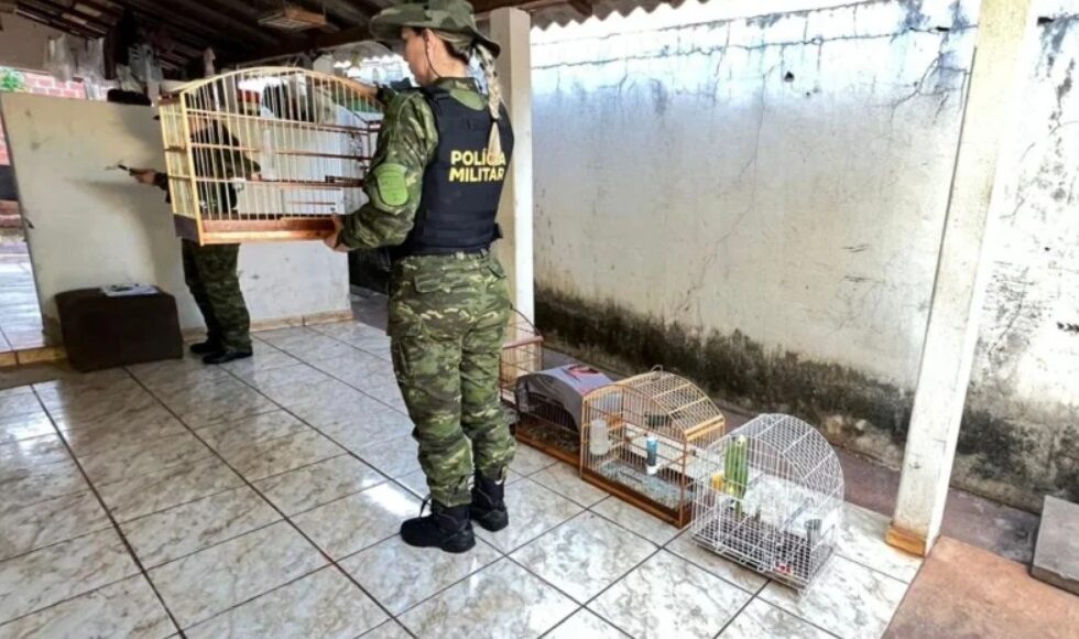 Durante a ação, os policiais localizaram oito aves mantidas em cativeiro sem a devida autorização do órgão ambiental competente.