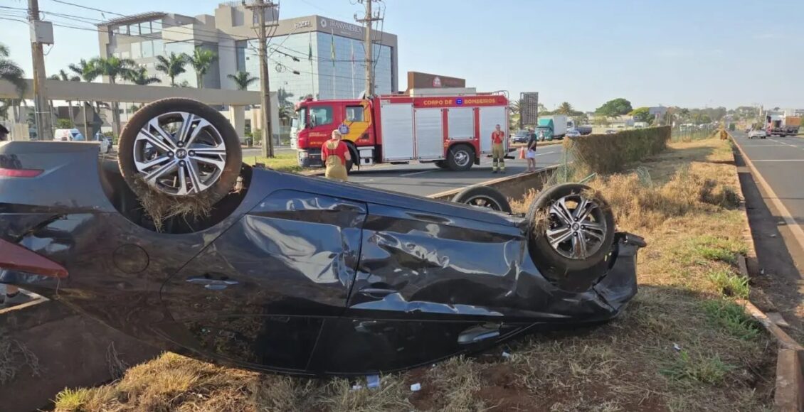 Na tarde desta sexta-feira (19), um carro capotou após se envolver em um acidente com um caminhão na PR-317, sentido Aeroporto de Maringá.