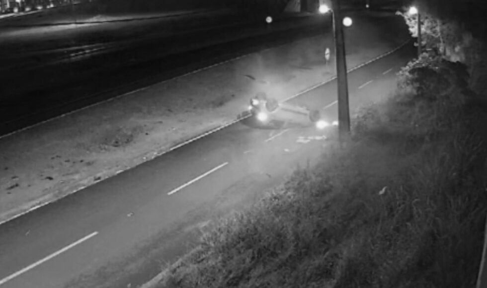 Uma câmera de segurança próxima ao local registrou o capotamento. Confira a seguir: