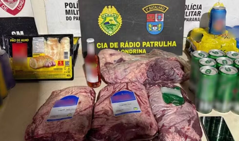 Com o grupo, a polícia apreendeu parte dos produtos furtados: latas de cerveja e energético, quatro pacotes de carne e pães de alho.