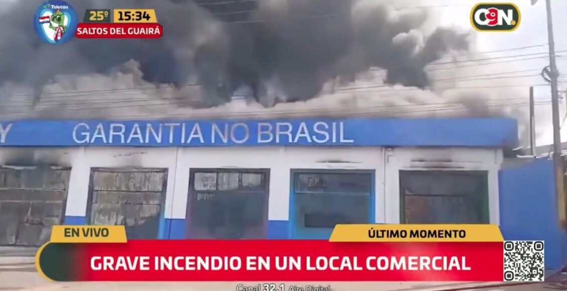 Um incêndio de grandes dimensões tomou conta do depósito da empresa Mitsuo em Salto del Guairá (PY), município que faz fronteira com o Brasil e que fica a 330 quilômetros de Maringá.