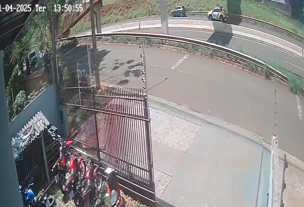 Uma câmera de segurança registrou o momento em que três suspeitos em um automóvel trocaram tiros com a Polícia Militar (PM) durante uma tentativa de abordagem. A ação ocorreu no começo da tarde desta terça-feira (4), no Contorno Norte de Maringá.