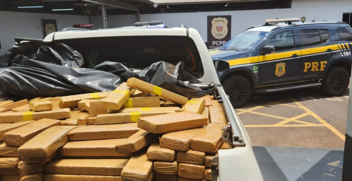 Nesta segunda-feira (22), a Polícia Rodoviária Federal apreendeu mais de uma tonelada de maconha, no km 170 da BR-487, em Campo Mourão. Um homem de 29 anos e uma mulher de 33 anos foram presos na ação.