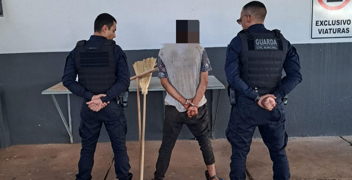 Com a chegada da equipe ao local, o suspeito já se encontrava contido por seguranças privados que atuavam nas proximidades. Conforme informações repassadas, o indivíduo estava furtando objetos como vassouras e rodos, havendo inclusive imagens que registram o momento em que ele pula o muro e realiza a subtração dos itens da escola.