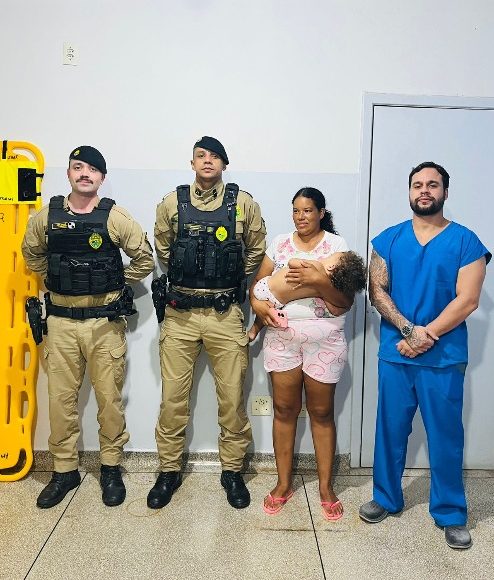Ainda no local, os policiais realizaram a “manobra de heimlich”, para desobstruir as vias aéreas da vítima, que voltou a apresentar sinais vitais na sequência. Os policiais também escoltaram a família até um pronto-socorro local, onde a criança foi atendida.