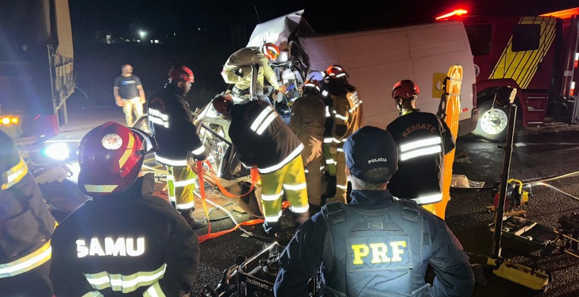 Equipes do Corpo de Bombeiros, do Samu (Serviço de Atendimento Móvel de Urgência) e da concessionária responsável pelo trecho realizaram o socorro à condutora da van, uma mulher de 35 anos, que ficou presa às ferragens.