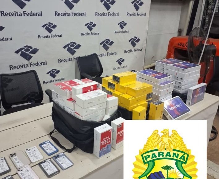 Uma carga de eletrônicos avaliada em R$ 110 mil foi apreendida pela Polícia Militar na rodoviária de Maringá na madrugada desta quinta-feira (16). A ação ocorreu por volta das 04h30, após o serviço de inteligência da PM monitorar um homem de 57 anos e uma jovem de 20 anos que transportavam o material.