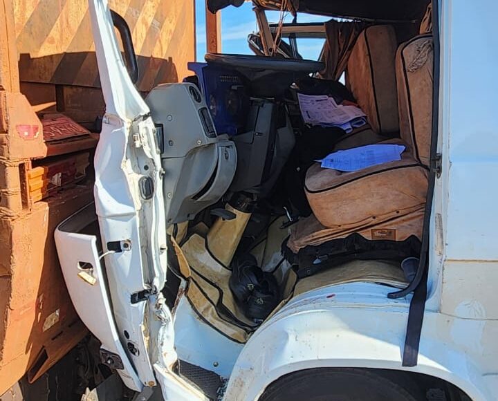 O motorista de um caminhão ficou preso às ferragens do veículo após uma colisão registrada na rodovia PR-082, na cidade de Fênix (93 km de Maringá), na manhã desta segunda-feira, 22.