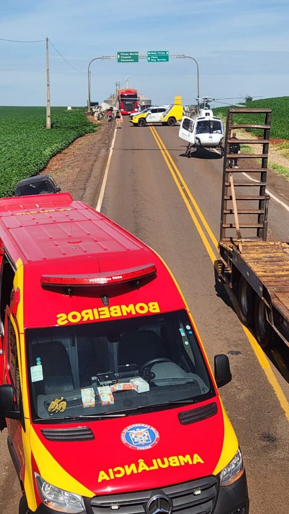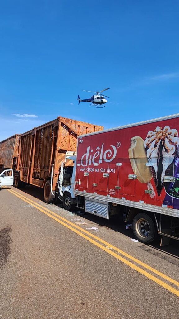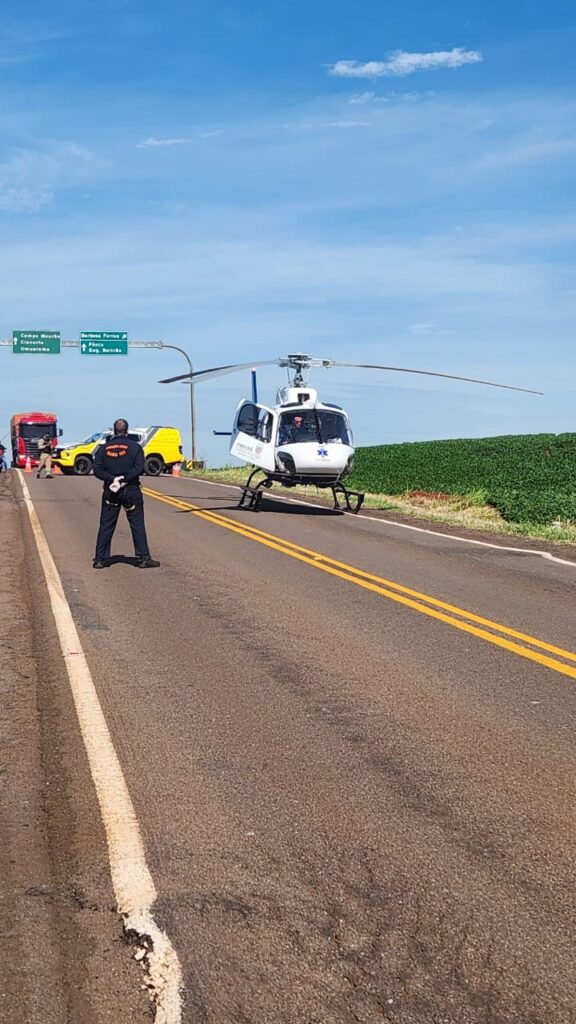 O condutor do caminhão de sorvetes, que tem 25 anos, ficou preso às ferragens do veículo e precisou ser encaminhado à um hospital de Campo Mourão pelo helicóptero de socorro do Samu.
